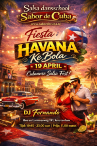 Fiesta Havana op 19 april in Amsterdam met speciale avond. Zeker het super gezellige zondagse Cubaanse Salsa feest: